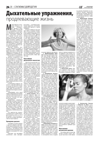 должительность жизни на 20–30 скается верхняя часть груди) и за- выдох» в каждую сторону. Упраж- такт вдохам и выдохам. Всё упраж- сверхмедленного вдоха к выдоху